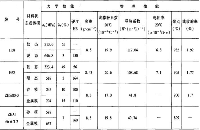 表2-8-4 常用黄铜的力学性能及物理性能[3]