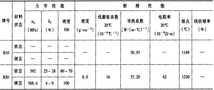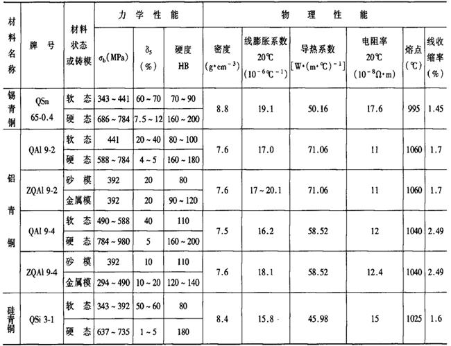 表2-8-6 常用青铜的力学性能及物理性能[3]