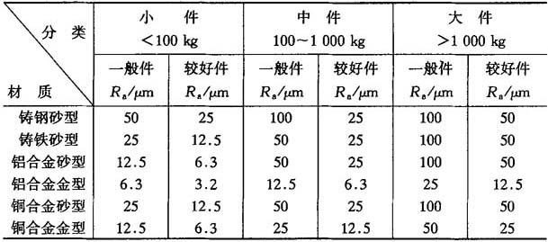 铸造表面粗糙度应符合表5-127、表5-128、表5-129的规定(摘自JB/JQ82001—90).