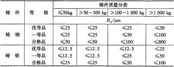 表5-127 铸钢、铸铁件砂型铸造表面粗糙度分级