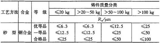 表5-128 有色金属铸件砂型铸造、金属型铸造表面粗糙度分级