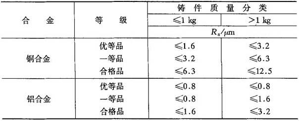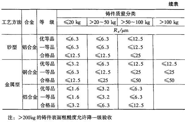 注:1.铸件的内腔非主要表面和加工表面的粗糙度可以相应降低一级验收.