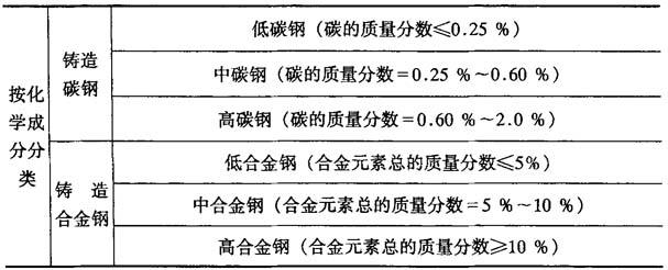 | 释义 | 铸钢 钢的种类很多,铸造生产时只用到其中的一部分.作为铸造材料的钢主要有铸造碳钢、铸造低合金钢的铸造高合金钢.其中有些钢种(例如高锰钢和高铬钢)由于本身性能的特点,不可能用轧制或锻压的方法加工,只能作为铸造材料.铸钢的分类见表4-4. 表4-4 铸钢分类