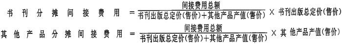 间接费用包括企业内各生产经营单位为组织和管理生产所发生的生产经营单位管理人员的工资、折旧费、修理费、机物料消耗费、低值易耗品、取暖费、水电费;办公费、差旅费、运输费、保险费、设计制图赠阅费、图书资料费等。企业发生的各项生产费用,应按成本核算对象和成本项目分别归集,“间接费用”明细科目先核算这些间接费用,月份终了,再按一定的分配标准,分配计入有关的产品成本。间接费用发生时,借记“生产费用——间接费用”,贷记“现金”“银行存款”、“应付工资”等科目。在月末按一定的方法在各产品之间进行分配。若出版社只有书刊产品,分配方法可以采用出版总印张分配法或书刊总定价分配法;如有书刊以外的其他产品生产,则先在书刊产品和其他产品之间进行分配,有产值分配法和售价分配法,可以用公式表示为: