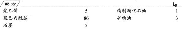 先将聚乙烯与聚己内酰胺混合,再加入其余组分混合均匀,用挤出机或入模热压制成薄膜或片材,即为产品。这种材料可用于轴承或滑动机械部件。