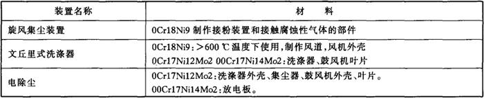 | 释义 | 除尘装置 在化学加工,食品和冶金等工业领域,广泛使用除尘装置。在某些工业中,除尘是为避免粉尘对产品的污染,在大多数工业中是减少粉尘对环境的污染。在各种除尘装置中广泛使用不锈钢制作耐腐蚀和耐高温部件,见表2-36。 表2-36 除尘装置中的不锈钢