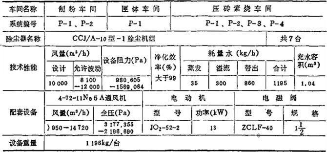 表6-42 某釉面砖厂除尘系统与排风量 (m3/h)