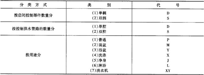 2.分类及代号(表6-82) 表6-82 陶瓷片密封水嘴的分类及代号