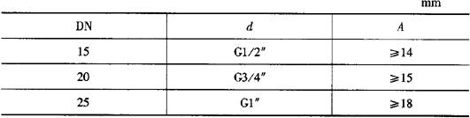 3.技术要求 (1)加工与装配 1)铸件不得有缩孔、裂纹和气孔等缺陷,内腔所附有的芯砂应清除干净。 2)管螺纹精度应符合相应的规定。 3)螺纹表面不应有凹痕、断牙等明显缺陷,表面粗糙度Ra不大于3.2μm。 4)塑料件表面不应有明显的填料斑、波纹、溢料、缩痕、翘曲和熔接痕。也不应有明显的擦伤、划伤、修饰损伤和污垢。 5)冷热水标志应清晰,蓝色(或C或冷字)表示冷水,红色(或H或热字)表示热水。双控水嘴冷水标志在右,热水标志在左,连接牢固。轮式手柄逆时针方向转动为开启,顺时针方向转动为关闭。 6)装配好的手柄应平稳,轻便、无卡阻。手柄与阀杆连接牢固,不得松动。单柄双控混合水嘴手柄扭力矩应大于等于6N-m±0.6N·m,在冷水、热水位置的开、关两个状态扭力矩应大于等于2.5N·m±0.5N·m;单柄单控和双柄双控水嘴手柄扭力矩应大于等于4N·m±0.5N·m。试验后,任何部件应无可见变形;阀芯密封、上密封、流量应达到标准要求。 7)陶瓷片硬度≥1000HV5。 8)与水嘴配接的软管应符合《卫生设备用软管》(JC 886)的规定。 9)水嘴连接螺纹应能承受扭力矩为:公称通径DN15,扭力矩≥61N·m;公称通径DN20,扭力矩≥≥88N·m。经扭力矩试验后,应无裂纹、损坏。 (2)外观质量 1)水嘴外表面涂、镀层应结合良好,组织应细密,光滑均匀,色泽均匀,抛光外表面应光亮,不应有起泡、烧焦、脱离、划伤等外观缺陷。 2)涂、镀层进行24h酸性盐雾试验后,达到标准10级的要求。 3)涂、镀层经附着力试验后,不允许出现起皮或脱落现象。 (3)使用性能 1)水嘴阀体的强度性能应符合表6-83的规定。 表6-83 水嘴阀体的强度性能