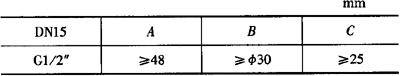 图6-12 单柄双控陶瓷片密封浴盆水嘴 5)陶瓷片密封洗涤水嘴规格尺寸应符合图6-13的要求。