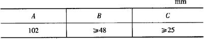 按表6-84中规定,用冷水进行试验和用空气在水中进行试验是等效的。 3)流量。 ①在动态压力为0.3MPa±0.02MPa水压下,浴盆水嘴(不带附件)流量不小于0.33L/s,面盆、洗涤等其他水嘴(不带附件)流量不小于0.20L/s。 ②面盆、洗涤及厨房水嘴(带附件)在动态压力为0.1MPa±0.01MPa水压下,流量不大于0.15L/s。 4)水嘴寿命。 ①单柄双控水嘴开关寿命试验达到7×104周期,单柄单控和双柄双控水嘴开关寿命试验达到2×105次后,应符合2)的要求。 ②转换开关寿命试验达到3×104次后,应符合2)的要求。 ③旋转式出水管寿命试验达到8×104次后,应符合2)的要求。 ④水嘴多冷热疲劳试验后,应符合2)的要求。 4.规格尺寸 1)单柄单控陶瓷片密封普通水嘴规格尺寸应符合图6-9要求。
