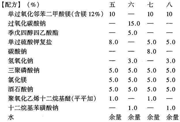 上述配方的清除剂具有良好的防霉、漂白和清洗作用。