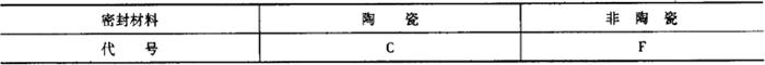 3)按密封材料分为陶瓷和非陶瓷两类,代号见表6-89。 表6-89 面盆水嘴按密封材料分类