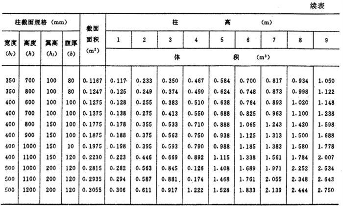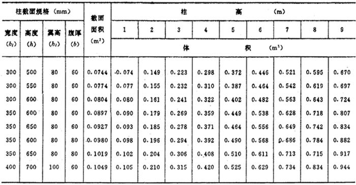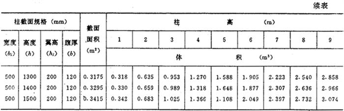 | 字词 | 预制钢筋混凝土Ⅰ形柱体积表 |