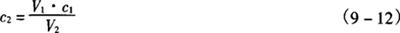 图9-4 钙标准曲线 测定用样品液及试剂空白液由标准曲线查出浓度值(ρ及ρ0),再按式(9-18)计算。