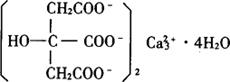 式中 V——乙二胺四乙酸二钠标准溶液用量,mL c——乙二胺四乙酸二钠标准溶液的浓度,mol/L m——样品质量,g 0.1862——每毫摩(CH3CH2COO)2Ca的质量,g/mmol 两次测定结果之差不得大于0.2%,取其算术平均值。 七、柠檬酸钙 化学名:柠檬酸钙(Calcium Citrate) 结构式: