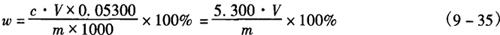 式中 c——盐酸标准滴定溶液的实际浓度,mol/L V——滴定所消耗盐酸标准滴定溶液的体积,mL m——试料质量,g 0.05300——每毫摩 所得结果应表示至1位小数。 |