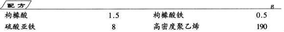 制法 (1)将枸橼酸、硫酸亚铁、枸橼酸铁混合,粉碎成粒度均匀、混合均一的粉末,得到的除臭成分,备用。 (2)将制得的除臭成分,加入高密度聚乙烯,用混炼机混合均匀,再用40mm的挤出机(挤出口型长度为28mm,压缩比为3∶1,筒体温度为130℃,螺杆转速为70r/min),混炼均匀后进行造粒,得热塑性树脂组成物。然后将它投入吹塑装置(30mm挤出机,吹塑膜头为50mm,筒体温度为140℃,螺杆转速为60r/min),经吹塑,得厚度为50μm的薄膜,即成产品。另外还可将它加工制成其他类型的除臭包装容器。 |