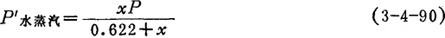 在该方程中因Φ为已知的常数,例如当Φ=1时,假定一个温度t,查饱和水蒸汽表可得到P′水蒸汽,按上式求出x,由t值和x值可在I-x图上确定一点,该点在Φ=1的相对温度线上,在I-x图上把由不同的t值和x值(当Φ=1时)所确定的点联结起来,则得到Φ=1的相对湿度曲线。其他等Φ线依此类推。 Φ=1的曲线表示在某一定温度下空气完全被水蒸汽所饱和。在此饱和线以上,为不饱和的湿空气区域,在此饱和线以下则为水蒸汽部分地自空气中冷凝析出的区域。 (5)水蒸汽分压线 水蒸汽分压值绘于I-x图之右纵坐标上,其单位为mmHg。水蒸汽分压与湿含量和总压强的关系式如下: