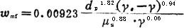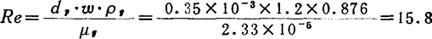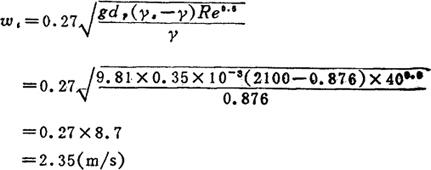 式中γs——物料重度,此处γs==2100kg/m3 γ——空气重度,此处γ=0.876kg/m3 μg——空气动力粘度,此处μg=2.33×10-5kg/(m·s)