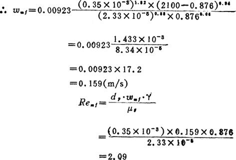因Remf<10,故不需修正wmf ∴wmf=0.159m/s ②颗粒极限速度wt计算 假定沉降在过度流区域并且Re假定=40