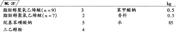 将水加入配料罐内,顺次加入表面活性剂,搅拌均匀,再加入防腐剂苯甲酸钠,最后加入香料,充分搅匀,装罐,即得成品。本品是碗碟、果蔬的理想清洁剂。