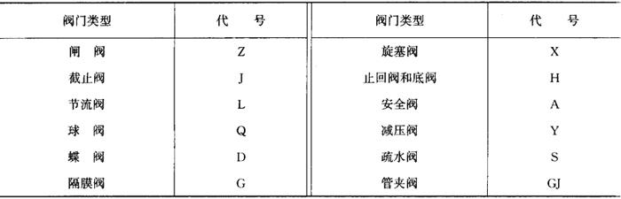 阀门类型代号见表6-4-36。阀门传动方式代号见表6-4-37。阀门连接形式代号见表6-4-38。公称压力数值按《管路元件公称压力》(GB1048)的规定,用阿拉伯字母表示。