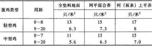注:本表为中型蛋鸡类型的饲养密度,轻型蛋鸡的养殖量可增加25%。