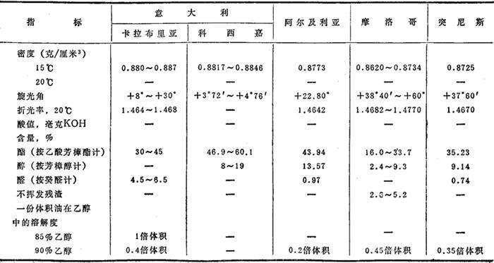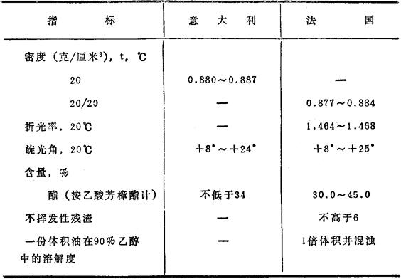 *这项指标的测定方法见附录第220页。 根据意大利和法国药典资料,香柠檬油的性质见表9.3。 表9.3 根据药典资料香柠檬油的物理化学指标