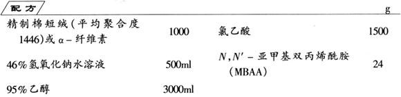 制法 在带搅拌器的反应器中加入精制棉短绒(或α-纤维素)和46%浓度的NaOH水溶液、氯乙酸、乙醇,其中乙醇∶纤维素=3∶1(V/W),在醚化后或醚化期间加入MBAA(纤维素量的2.4%)。反应产物经乙醇洗涤,中和,离心干燥,粉碎,制成白色颗粒状纤维素高吸水树脂。 因为这种高吸水树脂由聚电解质分子组成,遇水时纤维素羧甲基上的钠离子与水结合成水化钠离子,纤维素上未被取代的羟基通过氢键与水缔合。另一方面交联纤维素醚遇水时在胶粒与水间面形成一层半透膜,由于渗透压的作用驱动水分子进入胶粒内部,同时使胶粒润胀。所以这种高吸水树脂吸附的水量很大,可达420ml/g。 |