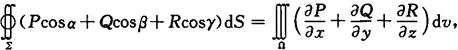 其中∑是Ω的整个边界曲面的外侧,cosα,cosβ,cosγ是∑与点(x,y,z)处法向量的方向余弦. 格林第一公式 设函数P(x,y,z),Q(x,y,z),R(x,y,z)在闭区域Ω上有一阶及二阶连续偏导数,则