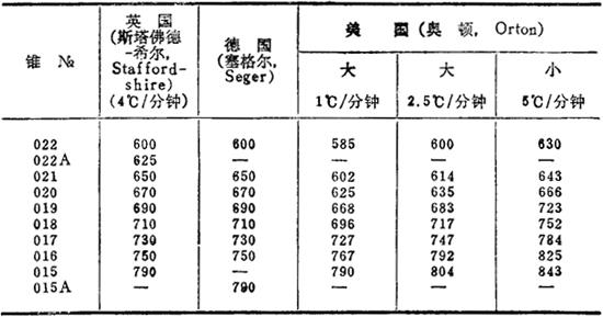高温锥号与标称温度(℃)