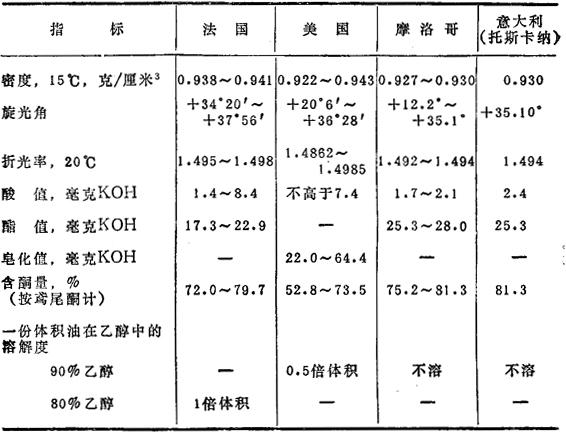 表16.3 苏联自干鸢尾根生产的鸢尾净油的物理化学指标