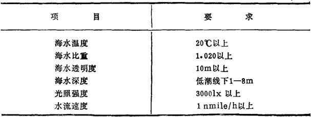 图8-2 麒麟菜的生活史 1.孢子体 2.果孢子 3.果孢子体 4.四分孢子 5.精子 6.果胞 7.雄配子体 8.雌配子体 3.麒麟菜的生态习性 麒麟菜为热带及亚热带海藻,一般生长在珊瑚礁上。生态习性如表3所示。 表8-3 麒麟菜的生态条件