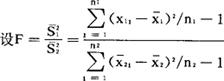 计算出F,再查F-分布表可得F1a和F2a。当F≤F1a或F≥F2a时,拒绝H0(σ1=σ2),当F1a≤F≤F2a时,接受原假设H0(σ1=σ2)。 |