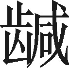 啮;啮咋皃。例:这货爱胡咬~人,乱提意见。❍ ~!(给人一中指),把这东西咬~住嫑放口,没有的事嫑胡咬~!❍ 老鼠咋~衣服。《广韵》:“,啮咋皃。”