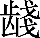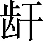 齿不正。例:少提意见胡咬,不要~住人不放手!❍ 这人像是一条凶狠的狗,~住你,楞咬,替主子效劳!《广韵》:“,齿不正。”《玉篇》:“,齿不正。”《集韵》:“,齿露皃。”