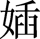 女不善皃。例:干这种丑事,都~不住人的眼,就不嫌羞耻!❍ 来回地引逗人,~人,这女人实在可恶!《集韵》:“,女不善皃。”