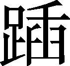 足動皃。例:抬~足,刚要走,被挡~住了。❍ 生气地踢~了他一脚。❍ 这回过事踏~大,花钱多。《集韵》:“,足动皃。”