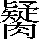 肥。例:人肥疑,身上的肉瓷~~的压不吓。❍ 黑嗜(贿赂)把人吃~得脖子都~胔(cǐ)不过了!《玉篇》:“,肥疑也。”