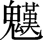 见鬼惊词。例:他爱装鬼吓~娃!❍ 他在睡梦中魇~爱惊叫!《说文》:“,见鬼惊词。”