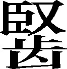 齿露皃。例:牙剚(cǐ)得长,~子嘴,搁不住话,辄爱说。❍ 露之牙,~子嘴,不说话由不得。《集韵》:“,齿露皃。”