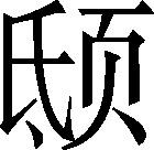 低头;头垂下。例:女子嫌羞,把头~下来,不敢盯人。❍ 人不行了,头~地垂了下来,颃筋断了!《集韵》:“,头垂下皃。”