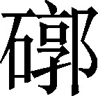 石磙动,或碰磕声。例:川道里的洪水将大石块吹得~~地滚了下来。❍ 山上的石头~~地礧(lūi)了下来。《广韵》:“,石声。”