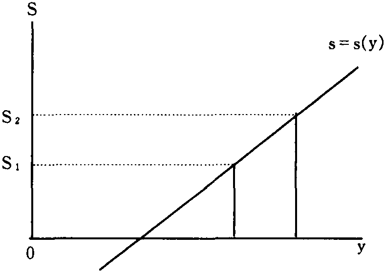 图1(c) IS曲线上的每一个点都表示在投资等于储蓄时的收入和利率的一个组合。在产品市场中,IS曲线上的每一个点都表示储蓄等于投资,为了满足产品市场的均衡条件,利率水平必须同收入水平相配合。因此,IS曲线表示的是使投资等于储蓄的收入和利润的各种组合。一般地说,位于IS曲线右方的收入和利率组合,都是投资小于储蓄的非均衡组合; 位于IS曲线左方的收入和利率组合,都是投资大于储蓄的非均衡组合; 只有位于IS曲线上的组合,才是投资等于储蓄的均衡组合。 LM曲线表明在满足货币市场均衡条件下利率与国民收入的各种不同的组合。它是根据投资需求函数和交易需求函数求取的。货币市场主要调节经济社会的货币需求和供给行为。凯恩斯认为,如果资本边际效率不变,投资量决定于利率。利率决定于流动偏好和货币数量,流动偏好表示在不同的利息率下,人们的货币需求量的大小,而货币数量是指在流通中的货币的供给量。流动偏好表示人们喜欢以货币形式保持一部分财富的愿望或动机,可分为交易动机、谨慎动机和投机动机。交易动机是指应付日常交易需要而持有一部分货币的动机; 谨慎动机是指为了预防意外的支出而持有一部分货币的动机。表示交易动机和谨慎动机所引起的全部货币需求量L1与收入的函数关系可表示为:L1=L1(y)。投机动机是指人们为了抓住有利的购买生利资产例如债券等有价证券的机会而持有一部分货币的动机。表示投机动机所引起的货币需求量L2的利率和函数关系可以表示为:L2=L2(r)。一般地说,利率高时,货币需求量L2小; 利率低时,货币需求量L2大。因此,全部货币需求量为L=L1+L2=L1(y) +L2(r),它表明L1的数值取决于y,与利率 (r) 无关,而L2的大小则与利率(r)保持方向相反的数量关系,作为L1和L2的总和L,其大小也与r保持方向相反的关系。货币供给是一个国家在某一时点上所保持的不属于政府和银行所有的硬币、纸币和银行存款的总和,这是指名义的货币量M,用价格指数P调整后可以得到实际货币量m,m=M/P,m可分为两部分: 满足交易需求 (包括交易动机和谨慎动机引起的货币需求) 的是m1,满足投机需求的是m2,即m=m1+m2。由于货币的供给量被认为是可以由国家控制的,所以m的大小与利率无关。因此,货币的供给曲线是一条垂线,表明不论利率 (r)为多少,货币供给均可处于一定的水平。货币市场的均衡要求货币需求 (L) 等于货币供给(m)。因此,可以列出下列三个公式: