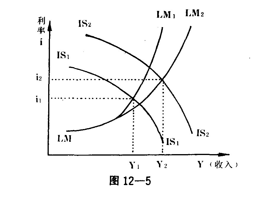 在汉森看来,利率不能离开收入水平单独决定。利率只有同收入一起才能被决定。怎样才能将收入导入利率决定分析呢?汉森认为将可贷基金利率论与凯恩斯货币供求利率论综合起来,就可把收入水平导入利率分析。如从可贷基金利率论的公式中,我们得到在各种不同收入水平下的一组可贷基金(储蓄)表,将它与投资表结合在一起便得到希克斯的IS曲线;从凯恩斯货币供求利率论中,可得出各种不同收入水平下的一组货币需求表,将它与货币供给量相结合,便可得希克斯的LL曲线(或称之为LM曲线)。而现在的IS曲线和LM曲线均是表示收入和利率变数之间的关系,即储蓄与投资相等的IS曲线,表示使产品市场的供求相均衡的利率与收入的组合,货币供求相等的LM曲线,表示使货币市场的供求相均衡的利率与收入的组合。因此,收入和利率共同决定于这两条曲线的交点(见图12—5)。而IS曲线与LM曲线的交点、表示产品市场与货币市场同时均衡的利率收入组合,在这点上所决定的利率叫均衡利率,所决定的收入叫均衡收入。