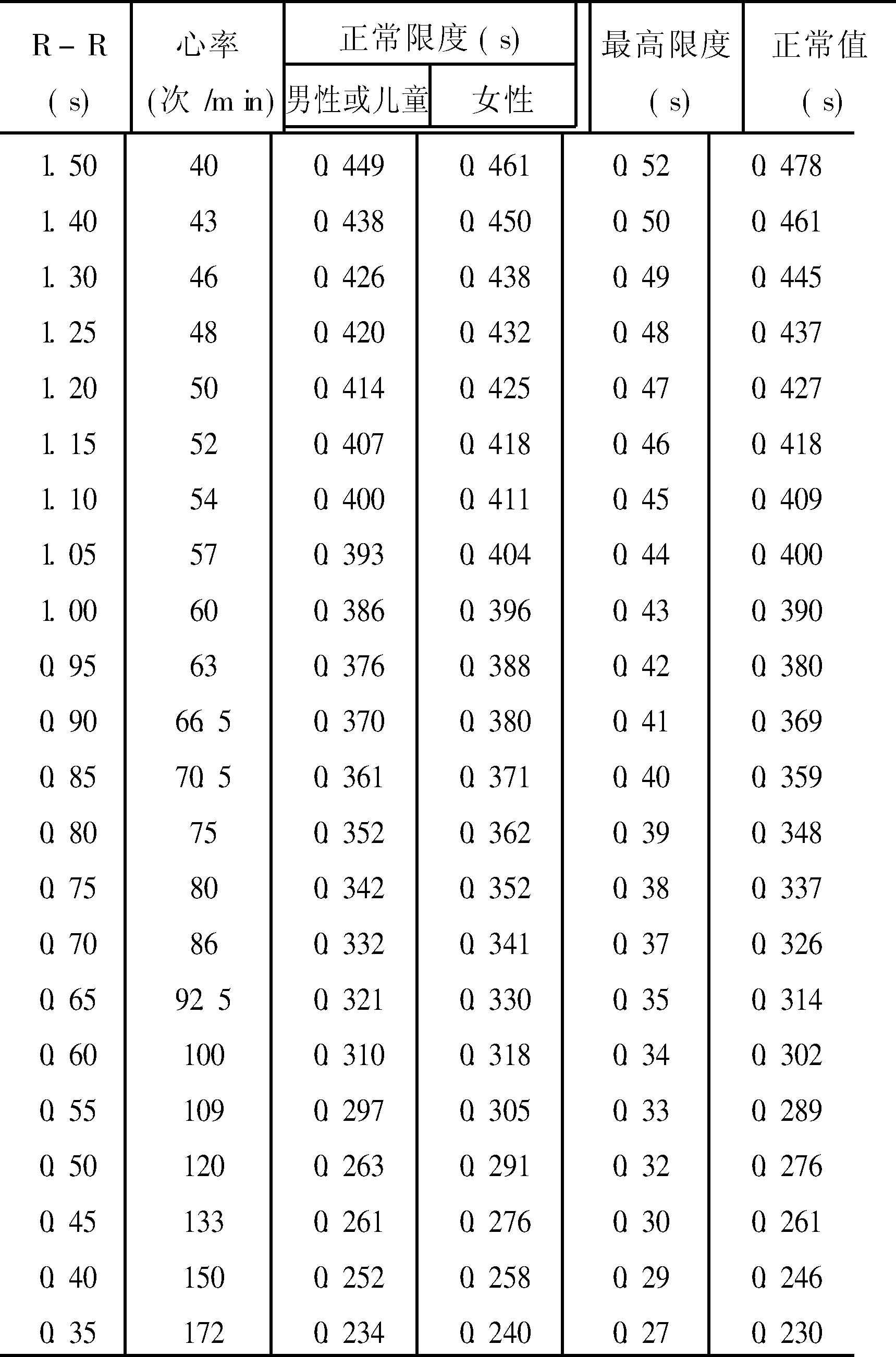 正常Q-T间期及其最高限度
