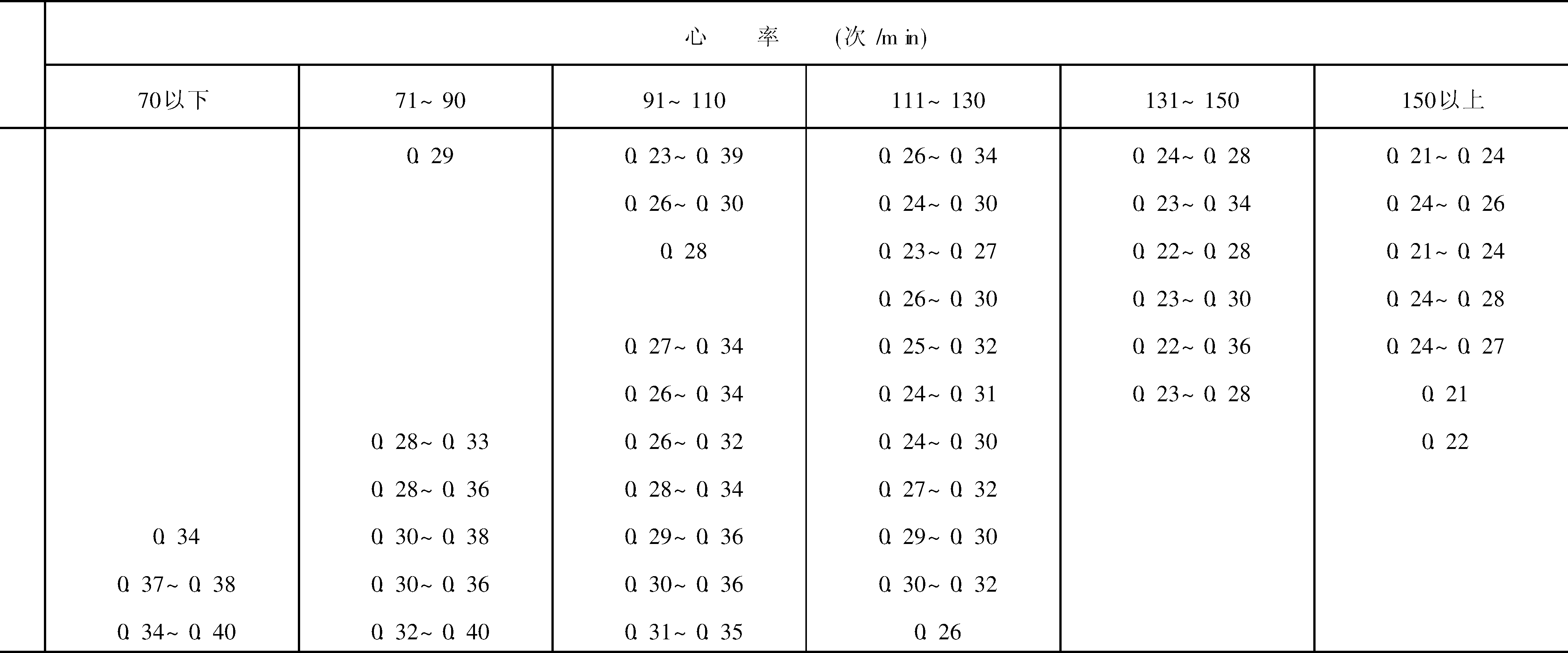 QRS波群起点至T波终点的时间,代表心室除极与复极过程的总时间,也称心室电收缩时间。Q-T间期长度与心率、年龄及性别有关,心率越快,Q-T间期越短,反之则长(见表),可用公式Q-T=K/