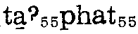 <动>❶招手 ❷打手势: Ga n hkrumnna~hkat nga ma ai. 他们因语言不通而互相打手势。❸看手相