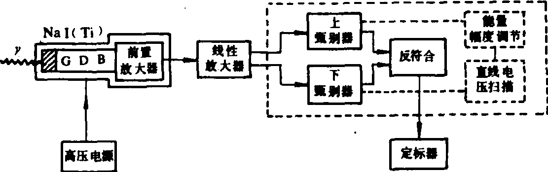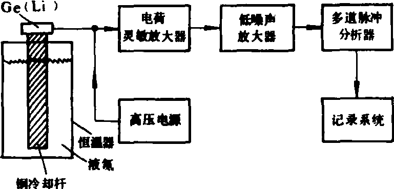 多道γ能谱仪 采用锗锂漂移探测器Ge(Li)与一个多道脉冲高度分析器的脉冲记录系统组成的仪器。如图2所示。这种仪器把各种脉冲,按其高度分类,并在对应的道中进行脉冲计数。其道址相应于脉冲高度,并表示射线的能量。每道的宽度间隔相等。它的道数有256、512、4096、8196道等。如一台8192道的多道能谱仪测量一次,相当于单道能谱仪要测8192次。这样可节省很多测量时间,数据稳定、可靠。而现代的多道能谱仪与计算机联用,实现自动化、智能化。它是活化分析所必需的仪器。